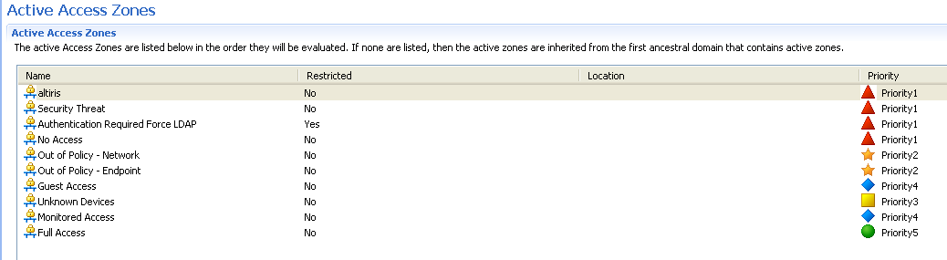 Add the new access zone or zones to "Active Access Zones" in your domain and position them according to their priority: