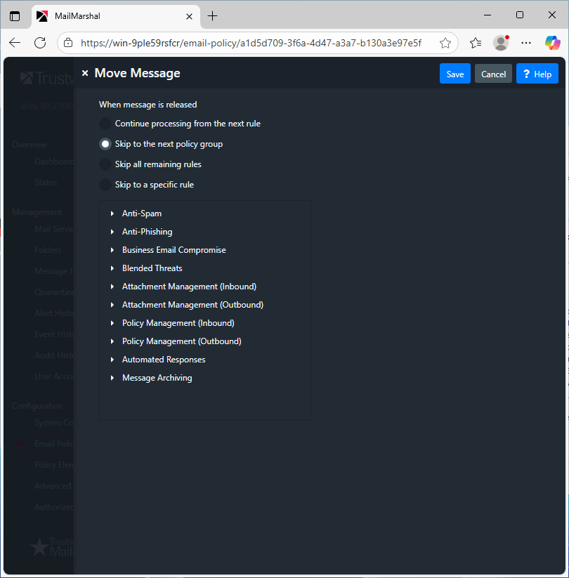 - How can messages released in the MailMarshal Exchange Quarantine Management website (QM) bypass remaining rules?