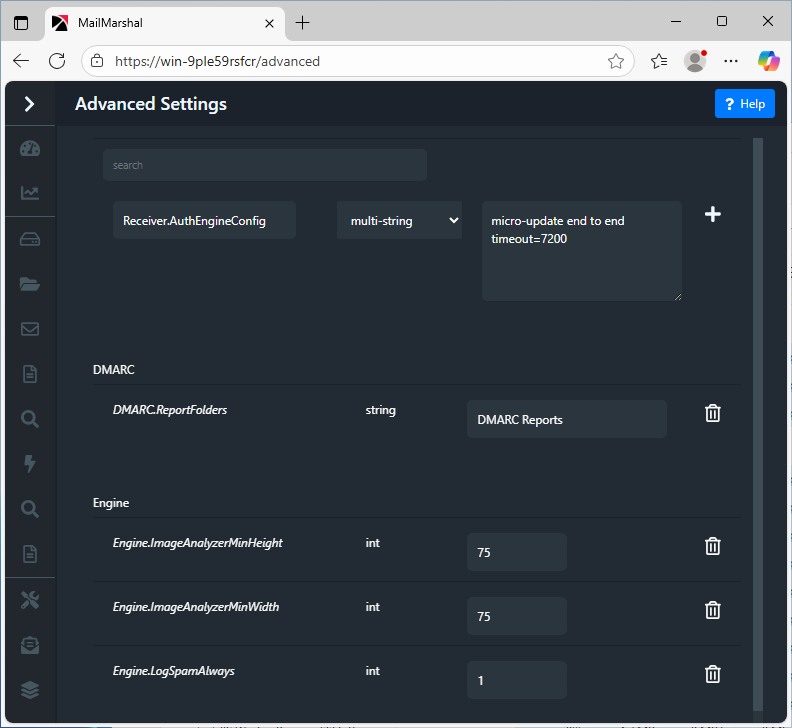 - If the Advanced Setting or registry value AuthEngineConfig already exists, you can add this setting. To enter multiple settings in the Value data field, enter one setting per line.