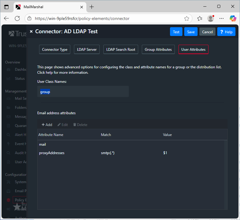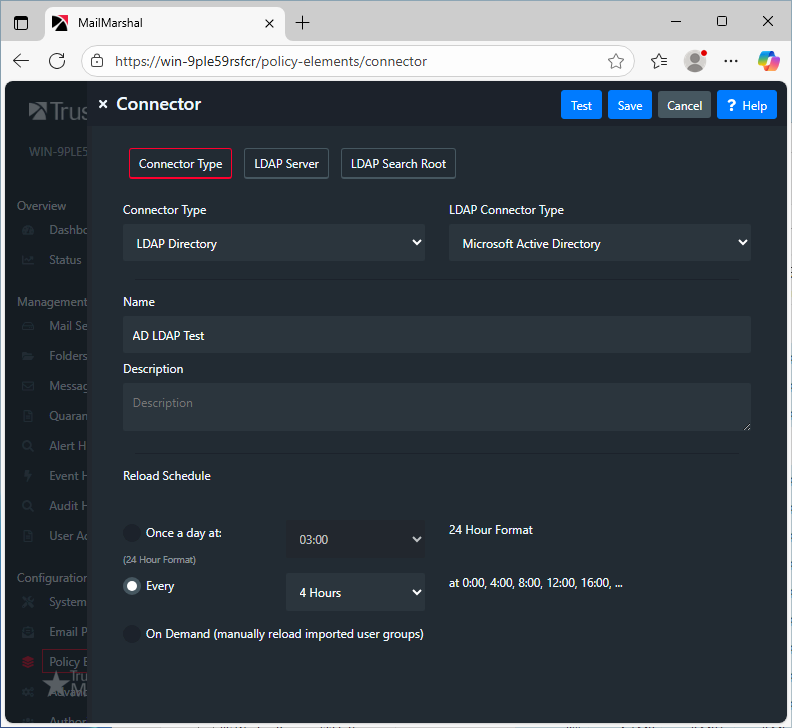 - In the MailMarshal Management Console (8.X: the Configurator), create a LDAP Connector.