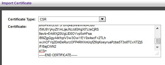 13. Choose CSR Certificate Type in the right pane and paste in certificate data that was copied in step 10 above: